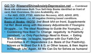 • In Positivity Self-Talk/Prayer statements included in the Book which were addressed in the Book Blog post dated 10/11/18 where the Positivity Process is combined with section 4 Spirituality aspects to furthermore empower them (or Us),I do include the related/associated words addressed above … with Child Like Exuberance and Enthusiasm… in (2) of the (4) statements. I.E: